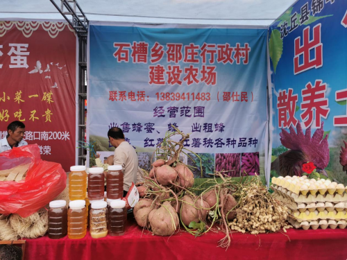 各农产品展示区内,水果、蜂蜜、香菇、中药材、家禽等各具特色的农产品和土特产,吸引了大批市民的眼球,当天展区线下销售额就达到近5万元,有些客户还进行了现场订货。这些农产品全部来自沈丘县各产业化龙头企业、新型农业经营主体、扶贫专业合作社带来参加展销和推广。